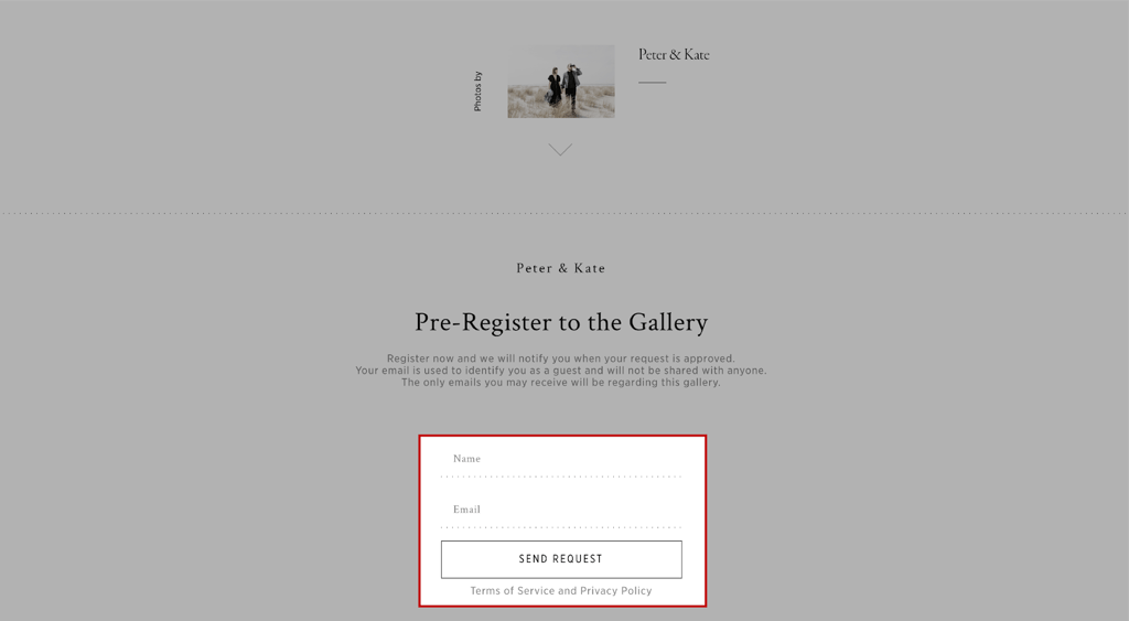 Once the guest sends their name and email request, they will receive a confirmation page with the photographer’s social media links in 2-3 days of period , if initial payment done