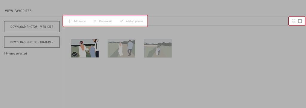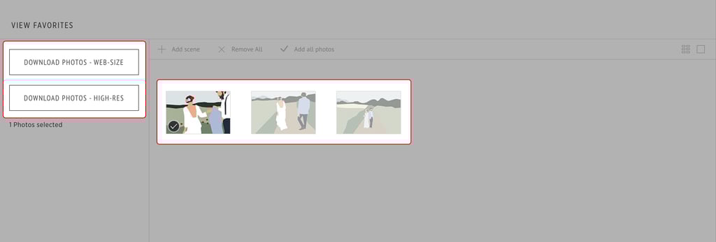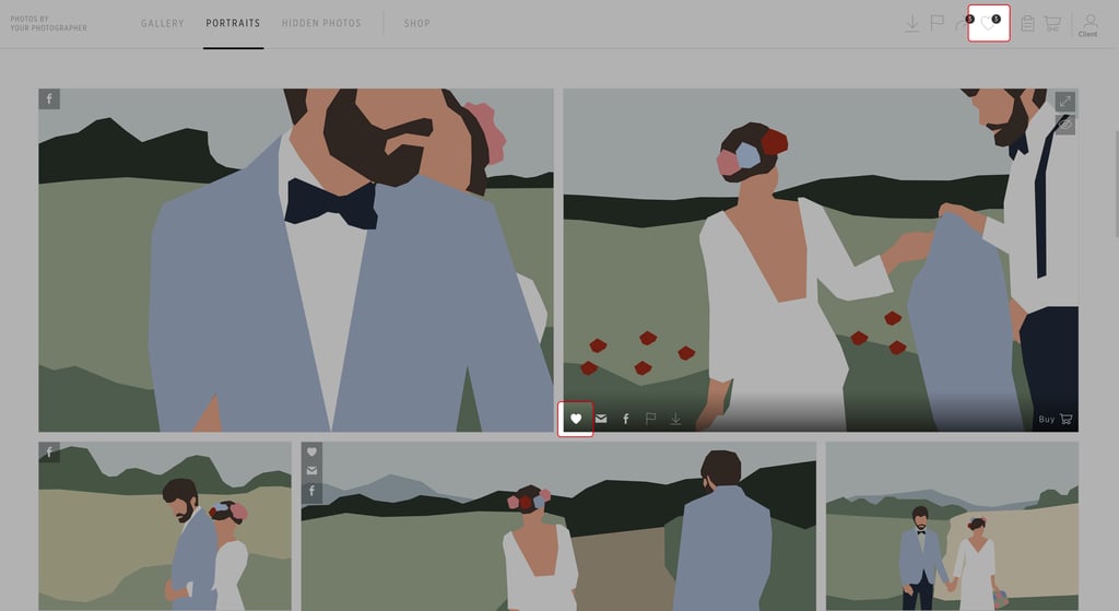 3. Click on the image to remove or add it back to your favorites list. Depending on what your photographer has available to you, you can also download your favorites list.