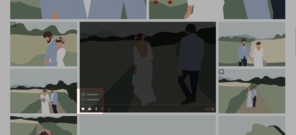 Then as you scroll through the gallery, click on the envelope icon and checkmark which collection you’d like to add your photo to.