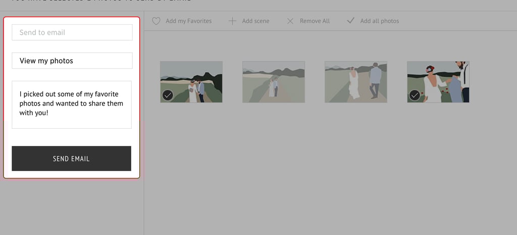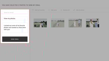 You also have the option to add your favorites list to your selection. Click the checkmark to remove any photos you don’t want to share