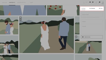 You can invite people via direct email, share the gallery link through a Facebook message, or copy the guest link to give to friends and family.